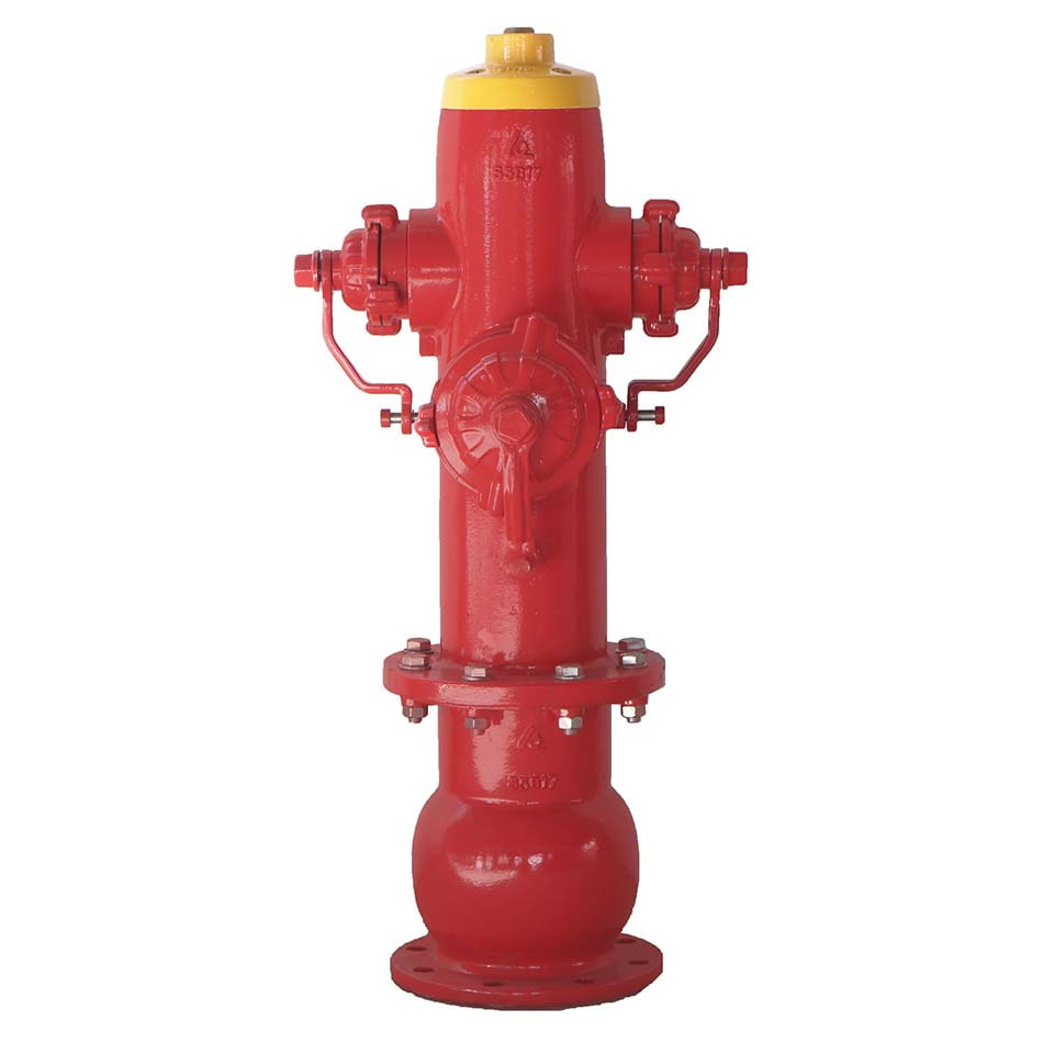 - Chân đế: dạng chữ L, hai đầu bích, một đầu nối vào hệ thống đường ống, một đầu nối vào bầu trụ. Chân đế thường được chôn dưới đất để nâng đỡ trụ lên trên mặt đất, sản xuất từ gang cầu FCD450, hai mặt được phủ bởi lớp sơn epoxy cao cấp với độ dày ≥300 μm