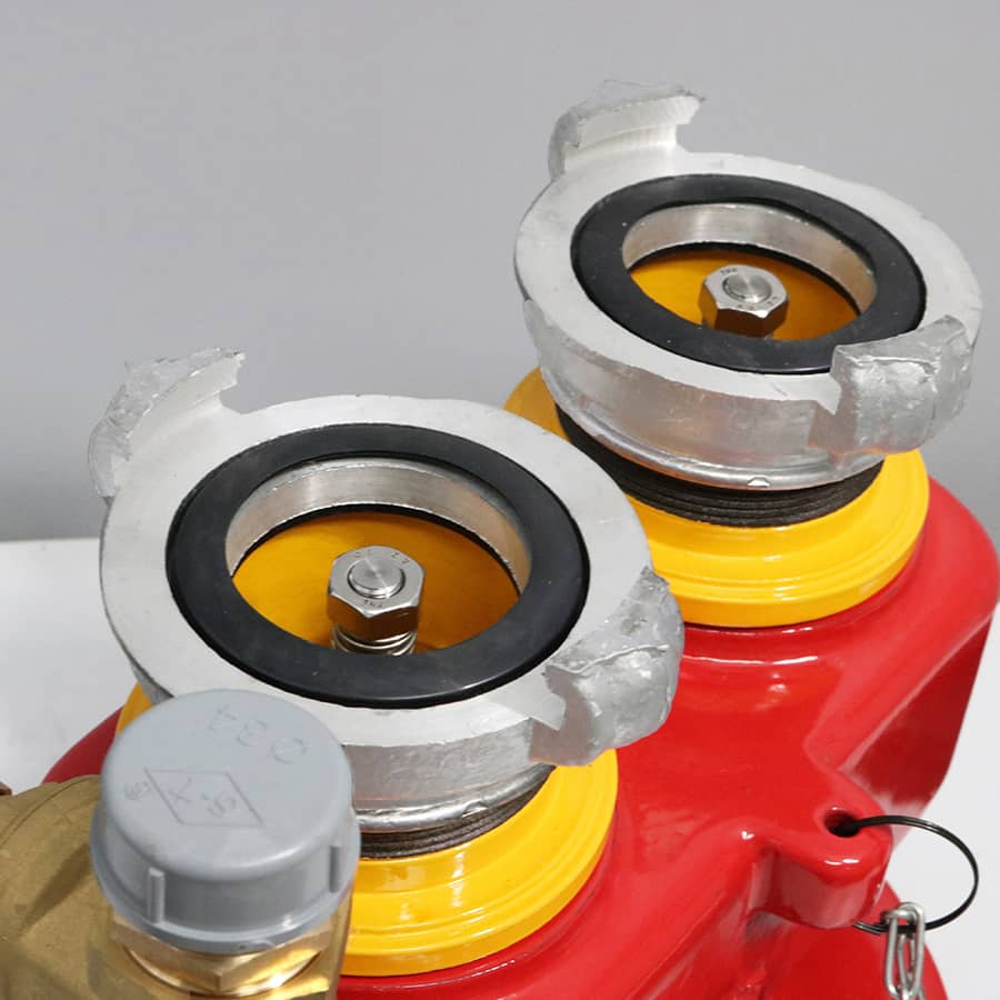 - Cửa tiếp nước: được thiết kế như van một chiều lò xo, chỉ cho nước vào không cho nước chảy ngược ra, kích thước cửa DN65. Trên cửa tiếp nước có ngàn bằng nhôm để kết nối với cuộn vòi chữa cháy.