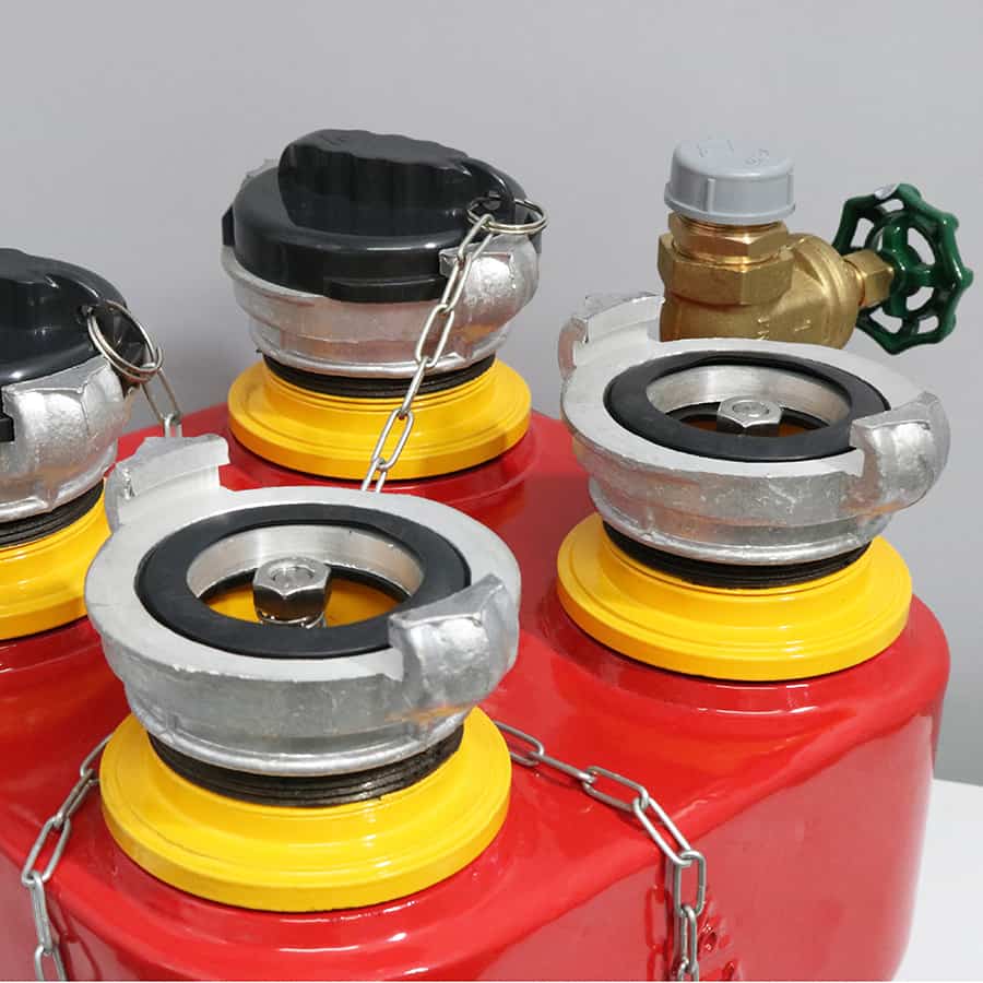 - Cửa tiếp nước: được thiết kế như van một chiều lò xo, chỉ cho nước vào không cho nước chảy ngược ra, kích thước cửa DN65. Trên cửa tiếp nước có ngàn bằng nhôm để kết nối với cuộn vòi chữa cháy.