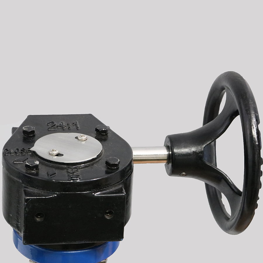 - Hộp số tay quay: được sản xuất từ thép không rỉ, gắn cố định vào thân trên của van bằng bu lông và đai ốc, có gắn một tay quay dạng vô lăng giúp vận hành nhẹ nhàng khi đóng mở.